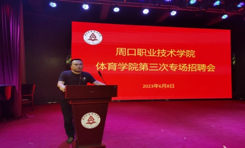 2023年6月8日,国产suv精品91于学前与艺术学院演播厅举办“周口职业技术学院国产suv精品91第三次专场招聘会”。国产suv精品91党总支书记范伟杰,国产suv精品91副院长李海磊出席本次招聘会,招聘会由国产suv精品91副院长李海磊主持。