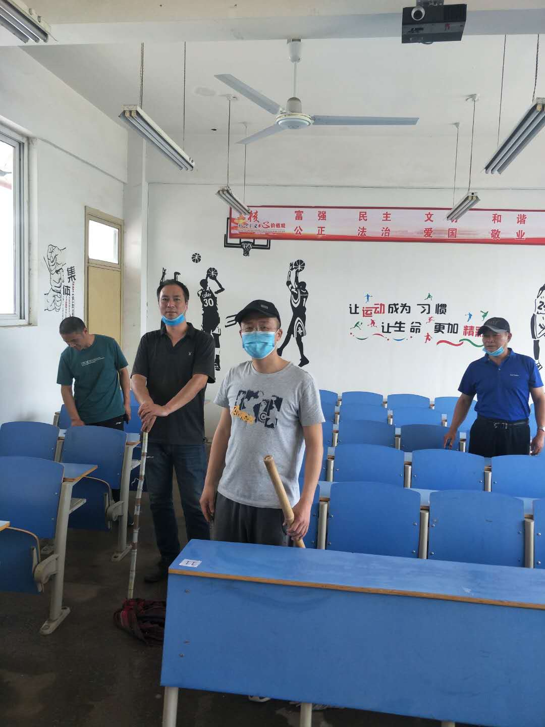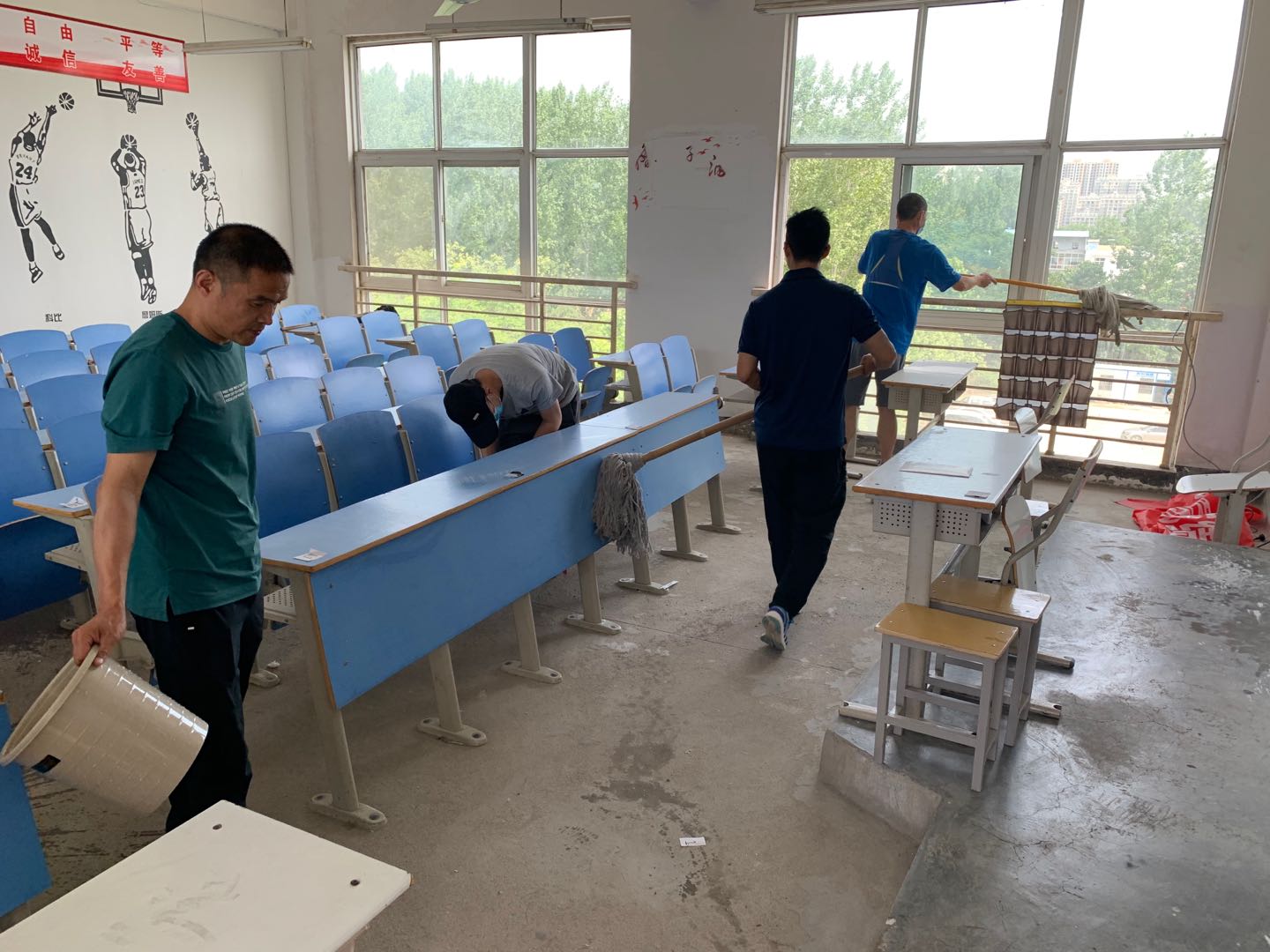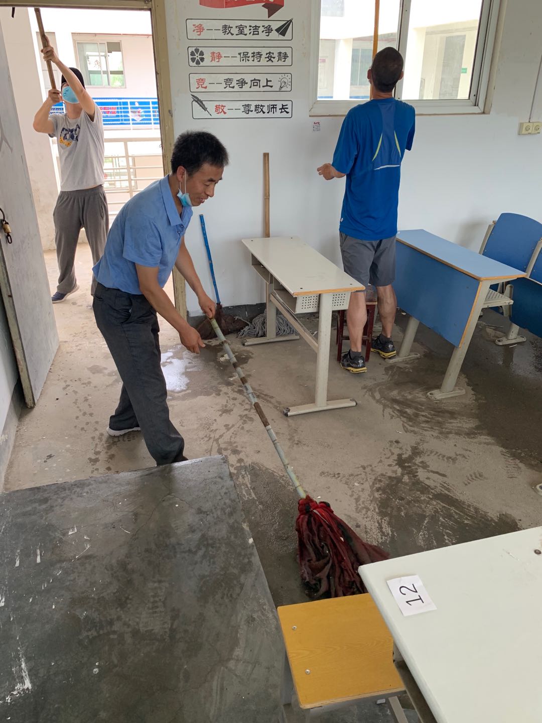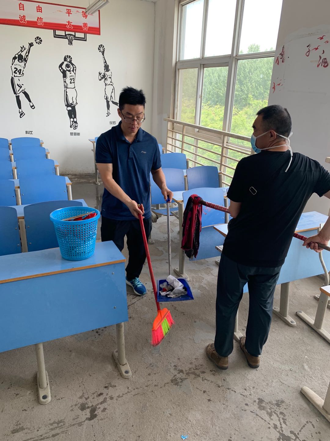 下面是教师打扫工作及打扫后的环境: