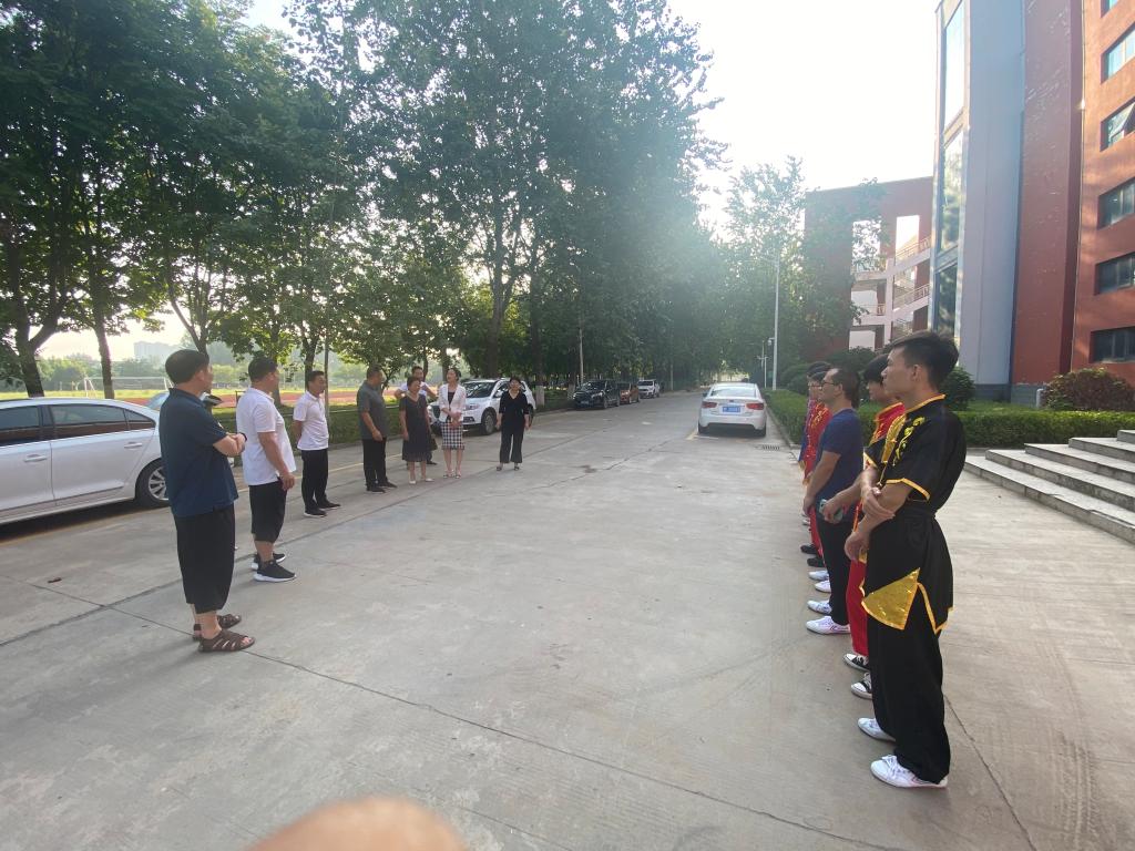2020年7月14日上午7点,李校长、刘处长带领学生处领导来体育馆看望即将出征河南省大学生武术锦标赛的同学们,天气炎热,学生处领导给学生带来了水跟饮料,希望此次出征能够创出佳绩!