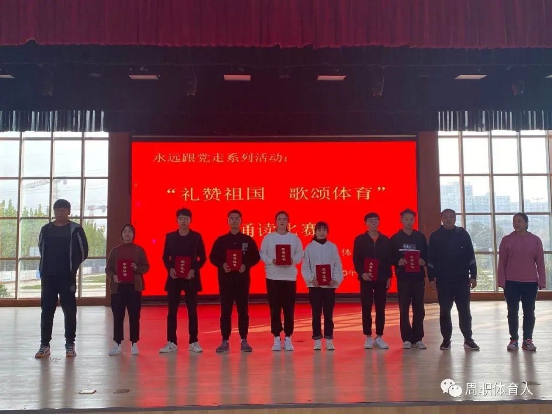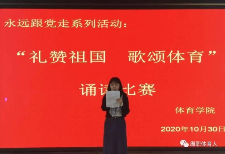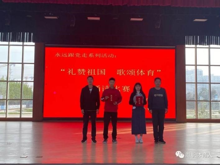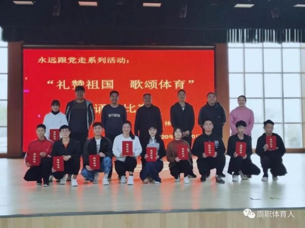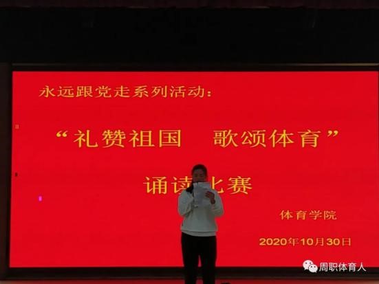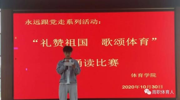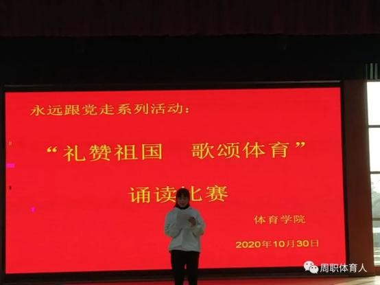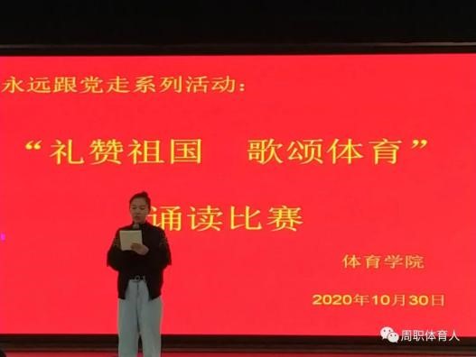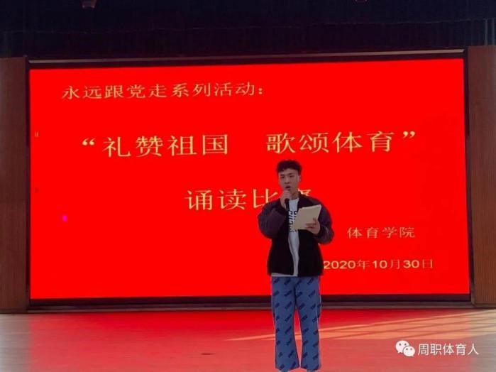 “礼赞祖国·歌颂体育”诵读比赛,充分展示了周职体育人:书写勇敢、展示坚强、洋溢自信的新风气,更激励着我院学生勇挑时代重担,用昂扬向上的体育精神在今后的校园生活中再创辉煌。