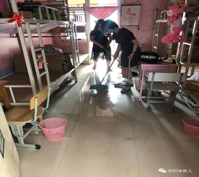 在女生宿舍,老师们估计在讨论这群女孩子把这宿舍搞得挺精致、漂亮,但时隔几个月还是有灰尘、柳絮,女老师们也开始了她们的卫生战