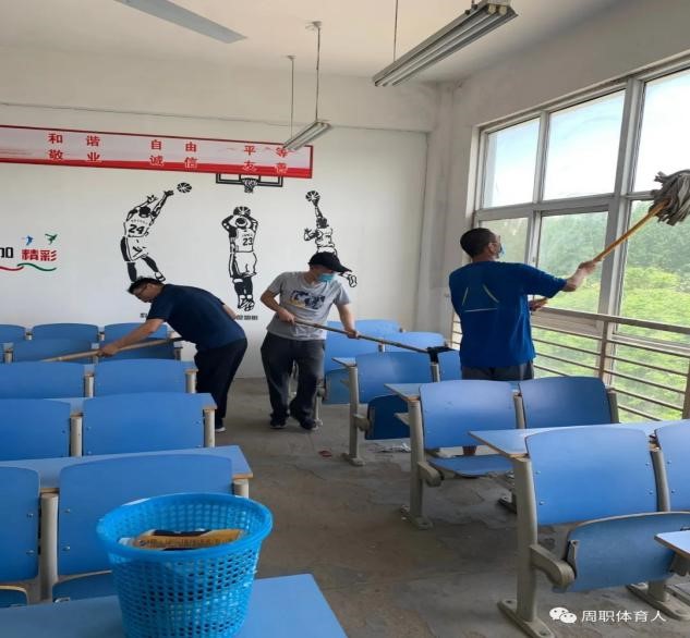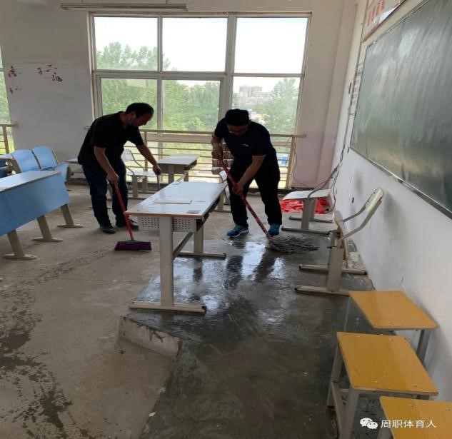 5月28日上午,在徐书记和王副院长的带领下,老师们入宿舍进教室进行卫生清洁,环境通风和消毒。